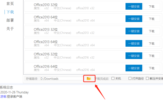 Office可以选择一键安装或者下载后手工安装,其他产品需下载到电脑中手工安装